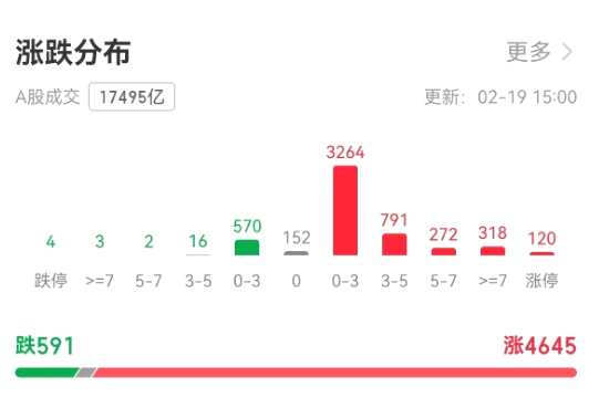 2月19日,A股三大指數(shù)集體收漲,上證指數(shù)漲0.8%至3351.54點,創(chuàng)業(yè)板指大漲逾2%;滬深300指數(shù)漲0.7%,成功收復(fù)年內(nèi)全部失地。A股全天成交額超1.7萬億元,120只個股收于漲停,人形機器人概念板塊大漲超8%。