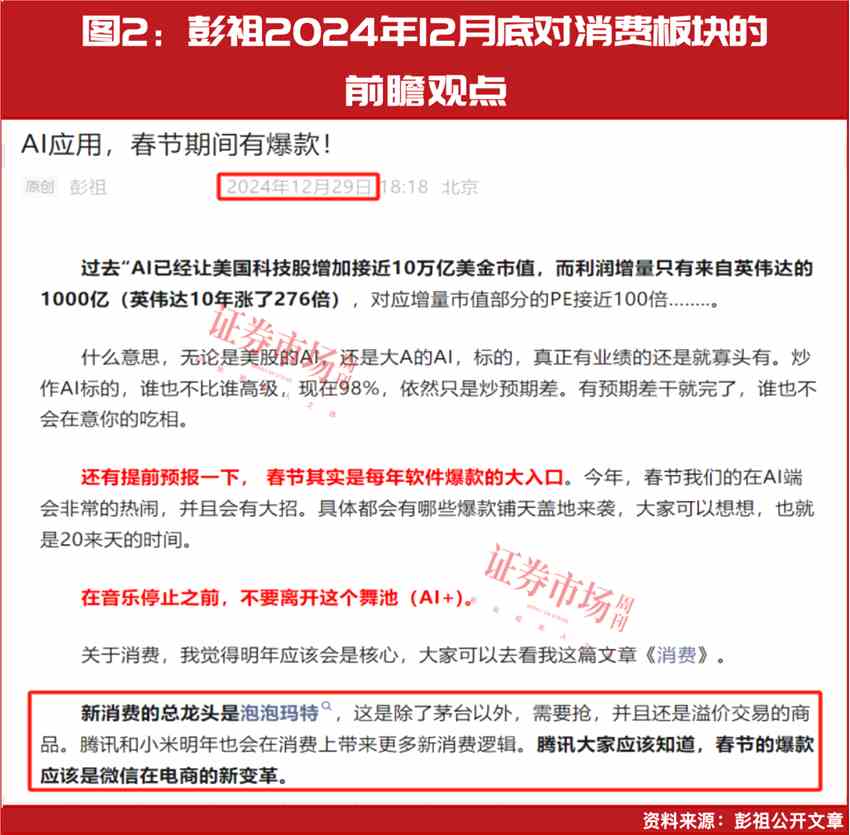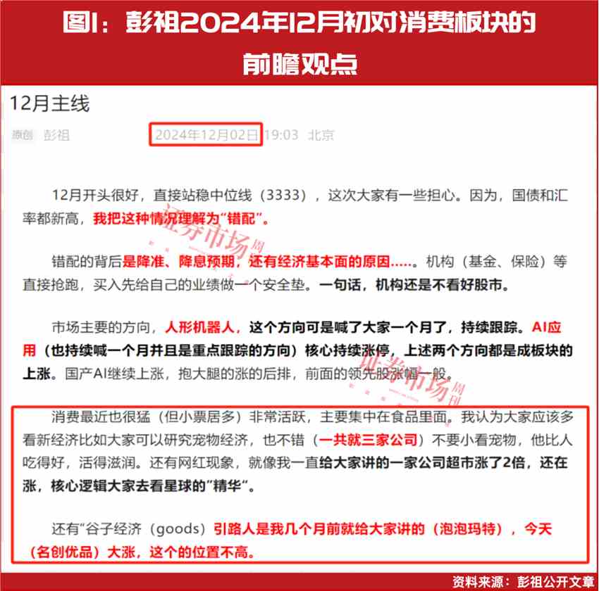 其實彭祖對消費行業(yè)的看好并非始于當前,而是早在去年的撰文中即多次提及。如去年12月初,彭祖在文章中表示,消費表現(xiàn)很猛,建議大家多看看新經(jīng)濟如寵物經(jīng)濟(見圖1)。結合二級市場表現(xiàn),去年12月至今,中寵股份累計漲幅一度翻倍,目前也仍有超90%的上漲,乖寶寵物(301498)亦大漲超60%。