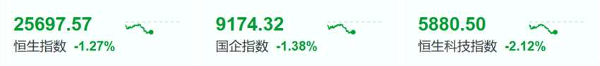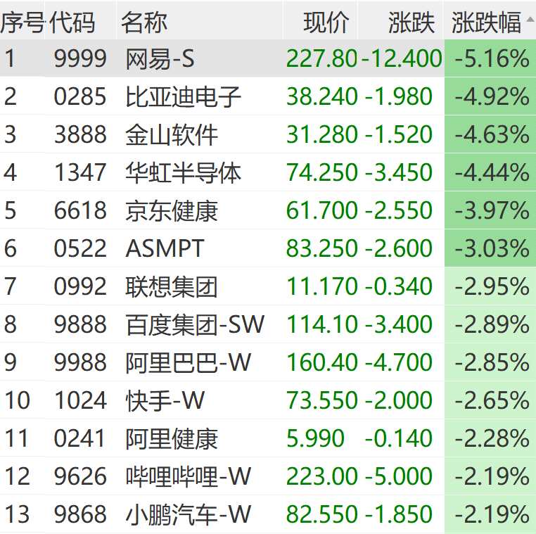 港股市場(chǎng)上午同步走低,截至午間收盤(pán),恒生指數(shù)、恒生國(guó)企指數(shù)跌超1%,恒生科技指數(shù)跌超2%。網(wǎng)易跌超5%,領(lǐng)跌恒生科技指數(shù)成份股。