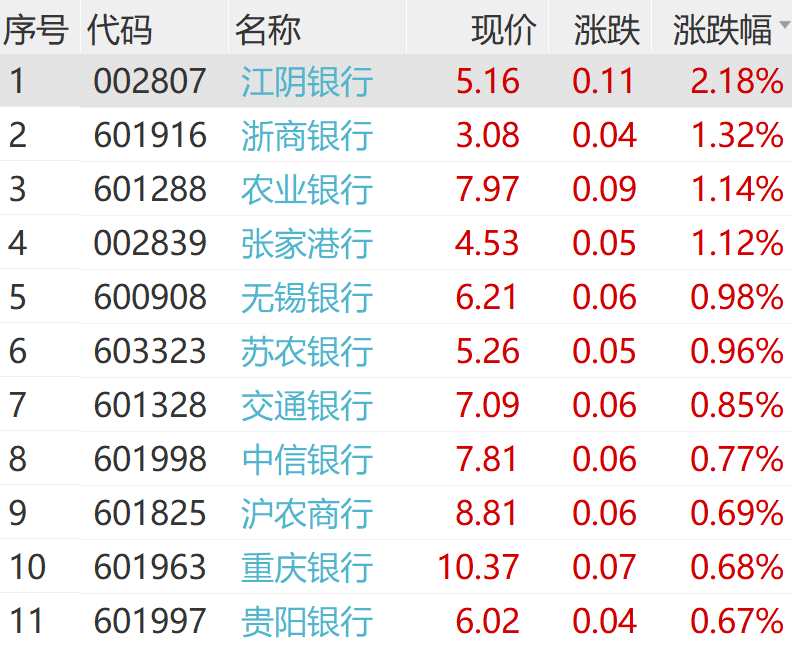 10月22日上午,銀行板塊表現(xiàn)穩(wěn)定,漲幅居于申萬(wàn)一級(jí)行業(yè)前列。