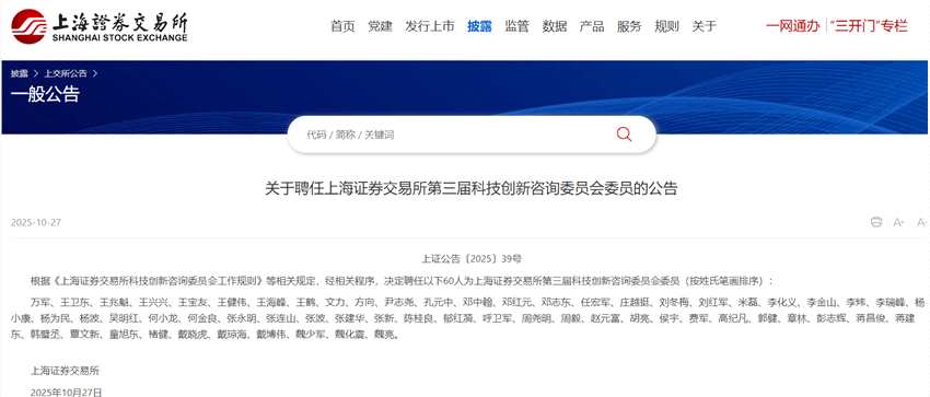 上交所聘任60名科技創(chuàng)新咨詢委員會委員,王興興、彭志輝等在列