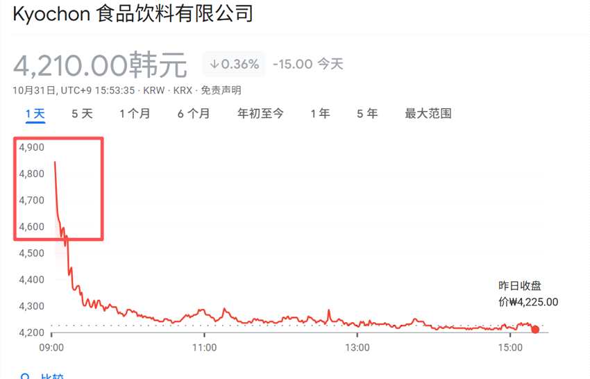 雖然Kkanbu未上市,但競爭對手校村食品(Kyochon F&B)的股價在今日一度飆升20%,此前有關(guān)這次聚會的照片和視頻在社交媒體上廣泛傳播。韓國家禽加工企業(yè)Cherrybro也漲停30%,成交量約為其日均水平的200倍。生產(chǎn)炸雞機(jī)器人的Neuromeka同樣大漲。