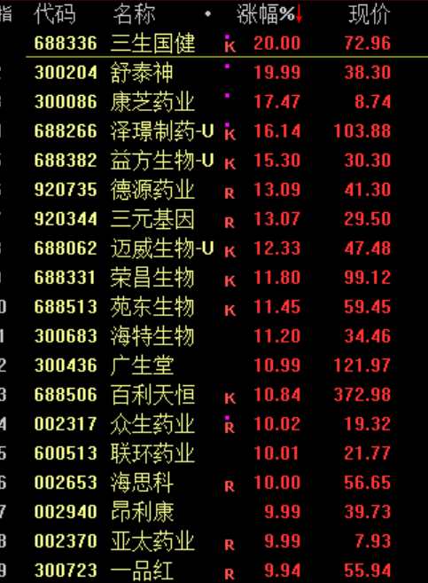 醫(yī)藥股集體拉升,舒泰神(300204)、聯(lián)環(huán)藥業(yè)(600513)等封板。