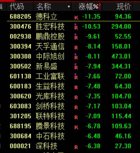 CPO等算力硬件股調(diào)整,天孚通信(300394)、中際旭創(chuàng)(300308)、新易盛(300502)均跌超7%。