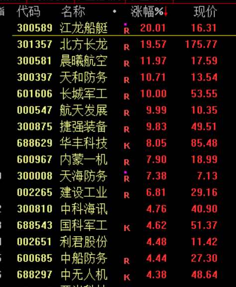 軍工概念盤中拉升,江龍船艇(300589)、航天發(fā)展(000547)等封板。