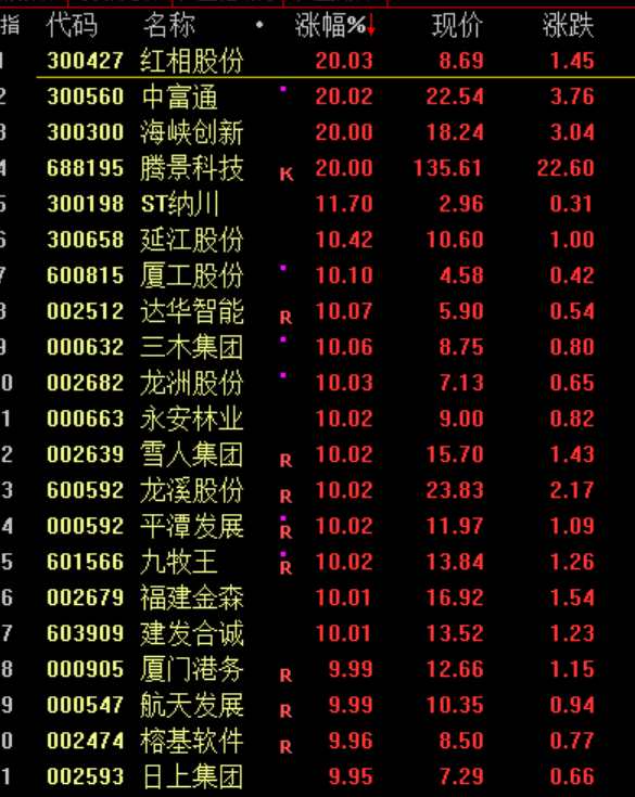 福建本地股再度大漲,海峽創(chuàng)新(300300)、平潭發(fā)展(000592)等20余股漲停。