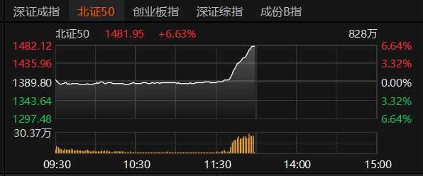 摘要: 午后,北證50指數(shù)突然直線拉升,截至發(fā)稿,漲幅擴(kuò)大至近7%,報(bào)1481.95點(diǎn),50只成分股全部上漲。個(gè)股方面,天力復(fù)合(920576)實(shí)現(xiàn)“30cm”漲停。消息面上,根據(jù)指數(shù)編制方案,