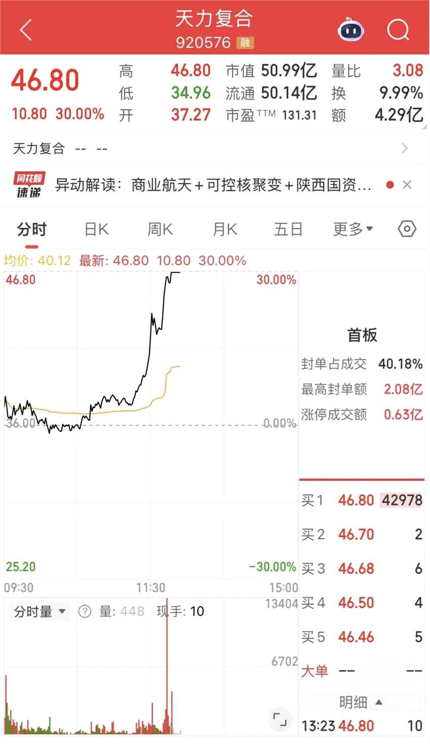 個(gè)股方面,天力復(fù)合(920576)實(shí)現(xiàn)“30cm”漲停。