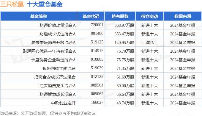 持有三只松鼠最多的基金為財(cái)通價(jià)值動(dòng)量混合A,目前規(guī)模為23.08億元,最新凈值3.421(3月27日),較上一交易日下跌0.67%,近一年下跌5.0%。該基金現(xiàn)任基金經(jīng)理為金梓才。