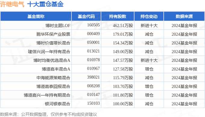 持有許繼電氣最多的基金為博時(shí)主題LOF,目前規(guī)模為53.67億元,最新凈值0.912(4月11日),較上一交易日上漲0.88%,近一年下跌11.2%。該基金現(xiàn)任基金經(jīng)理為金晟哲。