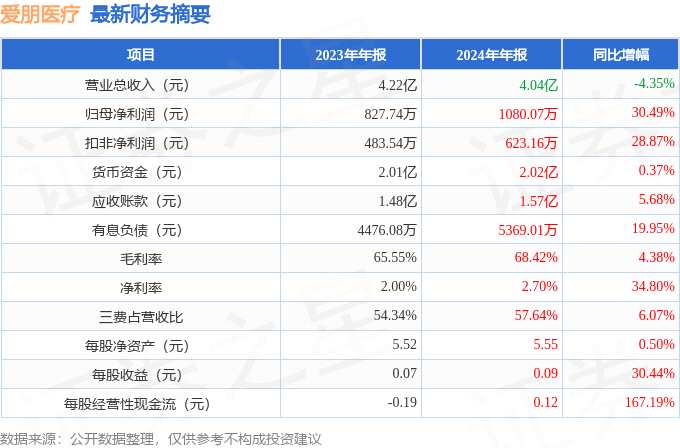 愛朋醫(yī)療(300753)2024年年報簡析:凈利潤增30.49%,盈利能力上升