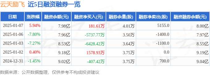 云天勵飛融資融券信息顯示,融資方面,當(dāng)日融資買入8900.86萬元,融資償還8719.26萬元,融資凈買入181.61萬元。融券方面,融券賣出7055.0股,融券償還1900.0股,融券余量4.01萬股,融券余額181.04萬元。融資融券余額8.0億元。