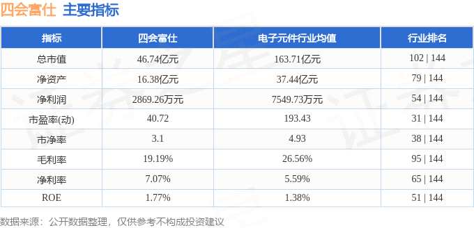 該股主要指標及行業(yè)內排名如下: